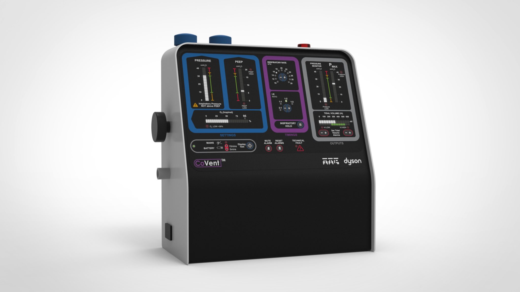 דייסון מיקדה את משאביה כדי לתכנן ולבנות מכונת הנשמה חדשה לחלוטין The CoVent. מכשיר זה נועד לתת מענה לצרכים הקליניים הספציפיים של חולי Covid-19, והוא מתאים למגוון מסגרות קליניות.