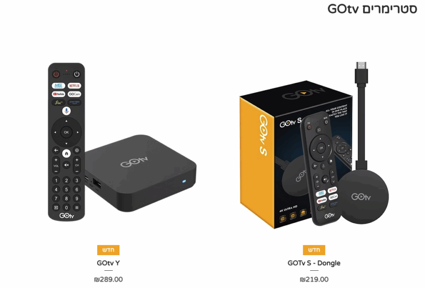 אז בהנחה שאתם צריכים סטרימר ולא לקחתם כזה מספק התוכן שלכם (חברות כמו יס, הוט, סלקום ופרטנר מספקות סטרימרים משלהם ללקוחות), שוק הסטרימרים שניתן לרכוש באופן פרטי לא גדול במיוחד. בשנים האחרונות GOtv הישראלית בנתה לעצמה שם של ספקית סטרימרים טובים עם תמורה מצוינת למחיר והדגמים החדשים, GOtv S ו-GOtv Y מציעים פתרון קל ונוח לכמעט כל לקוח שצריך להוסיף תכונות חכמות לטלויזיה שלהם.